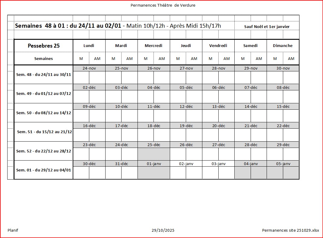 Dates retenues (ex. 24/11-M ou 25/11-AM)